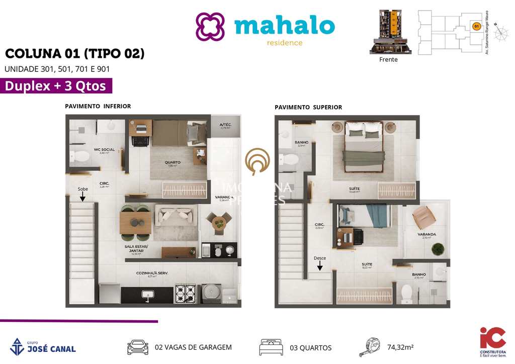 O Mahalo oferece diversas opções de plantas de 2 ou 3 quartos, incluindo unidades exclusivas Duplex e Garden. Todas as 82 unidades contam com a essencial Varanda Gourmet e infraestrutura para split.